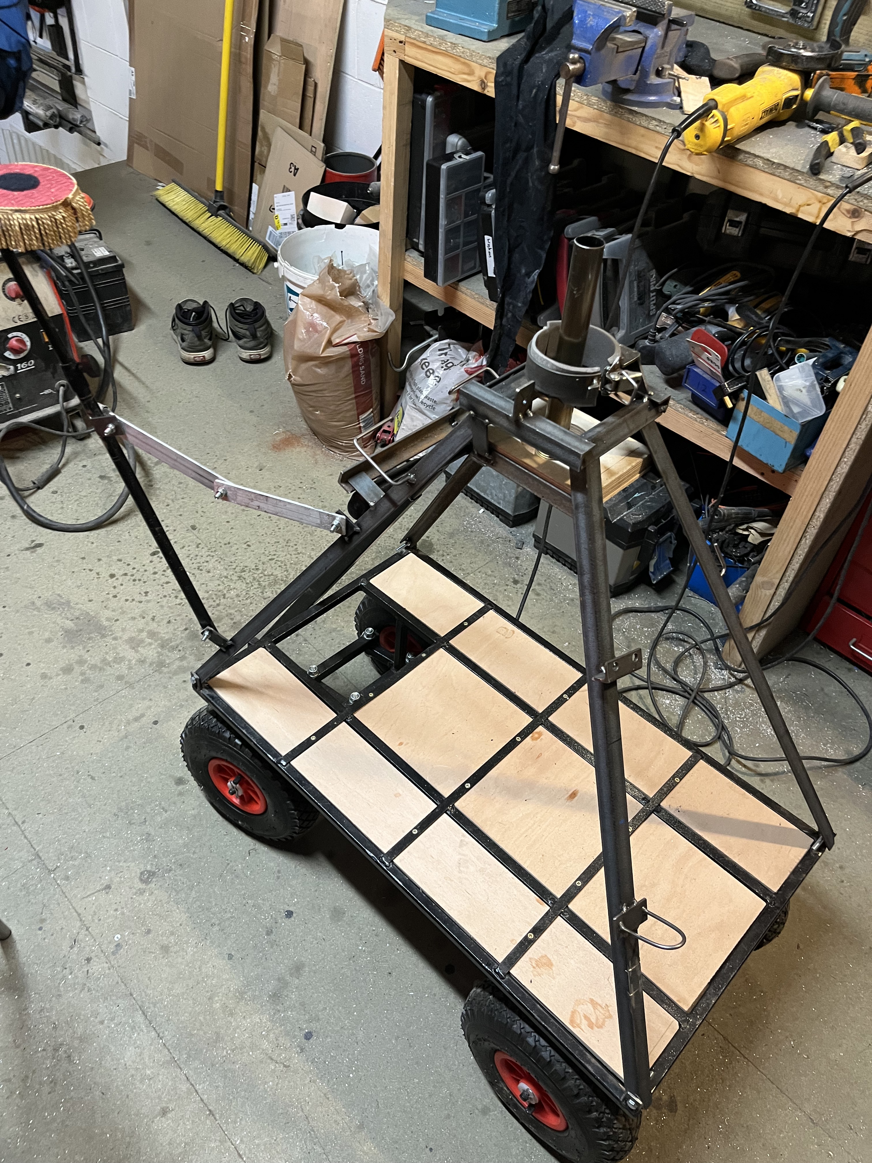 Materials: Steel, Reclaimed/Found objects, wood.