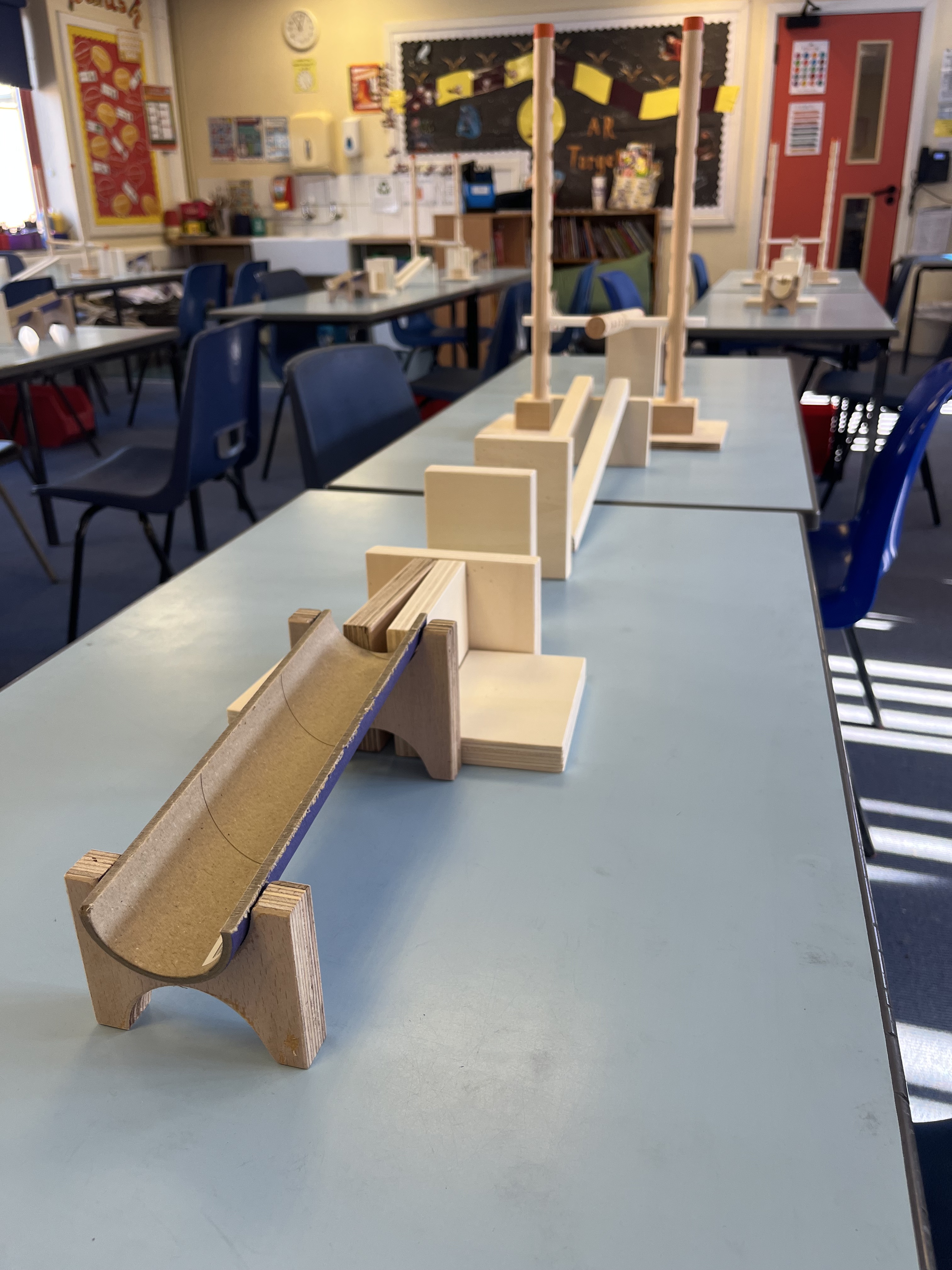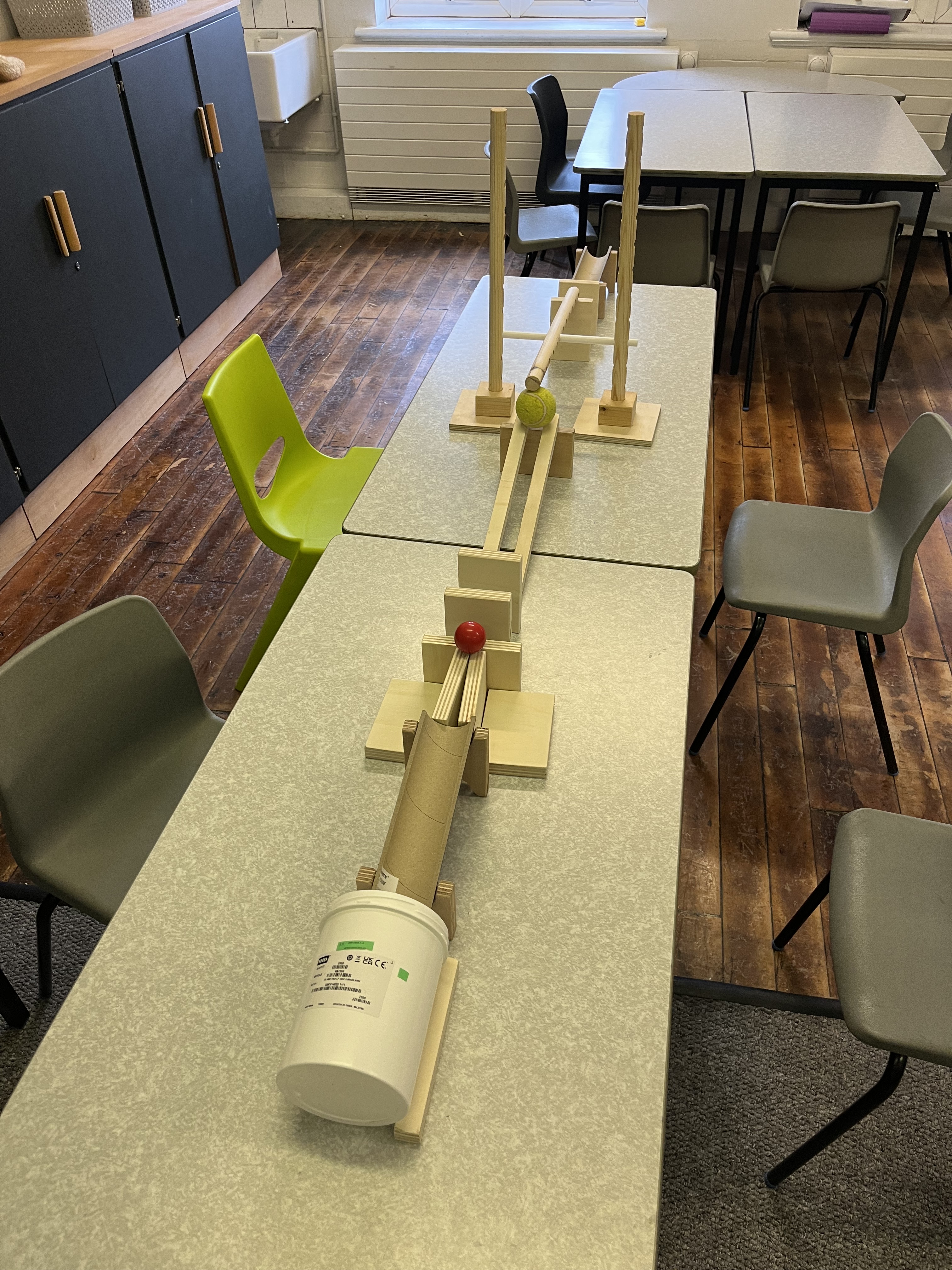 Made for: Matt PangYear: 2026Materials: Wood (95% Reclaimed/off-cuts)Processes: Wood WorkBrief: To design and make a kit of components which could be used in a school setting to allow children to make their own chain reaction machines.