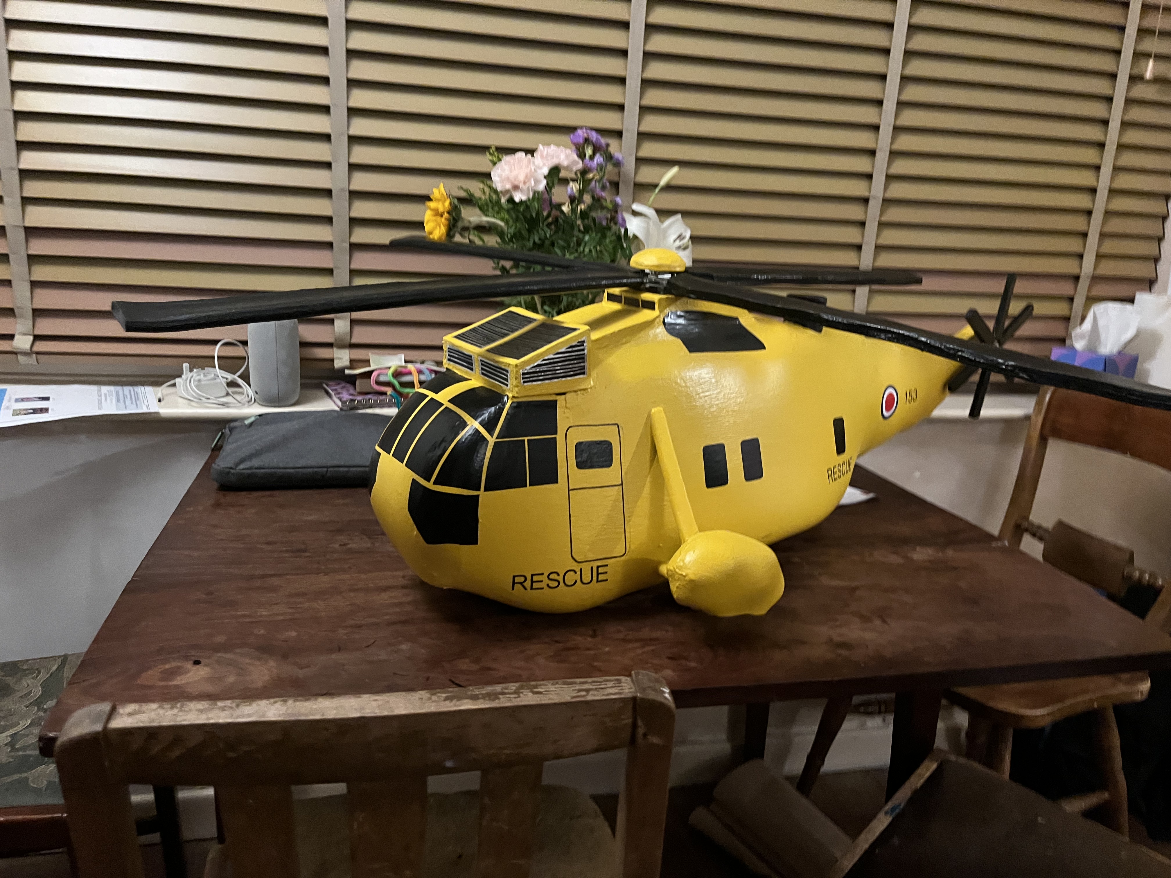 Brief: To make a model of a Sea King Search and Rescue Helicopter which could be worn as a hat. As light but sturdy as possible.