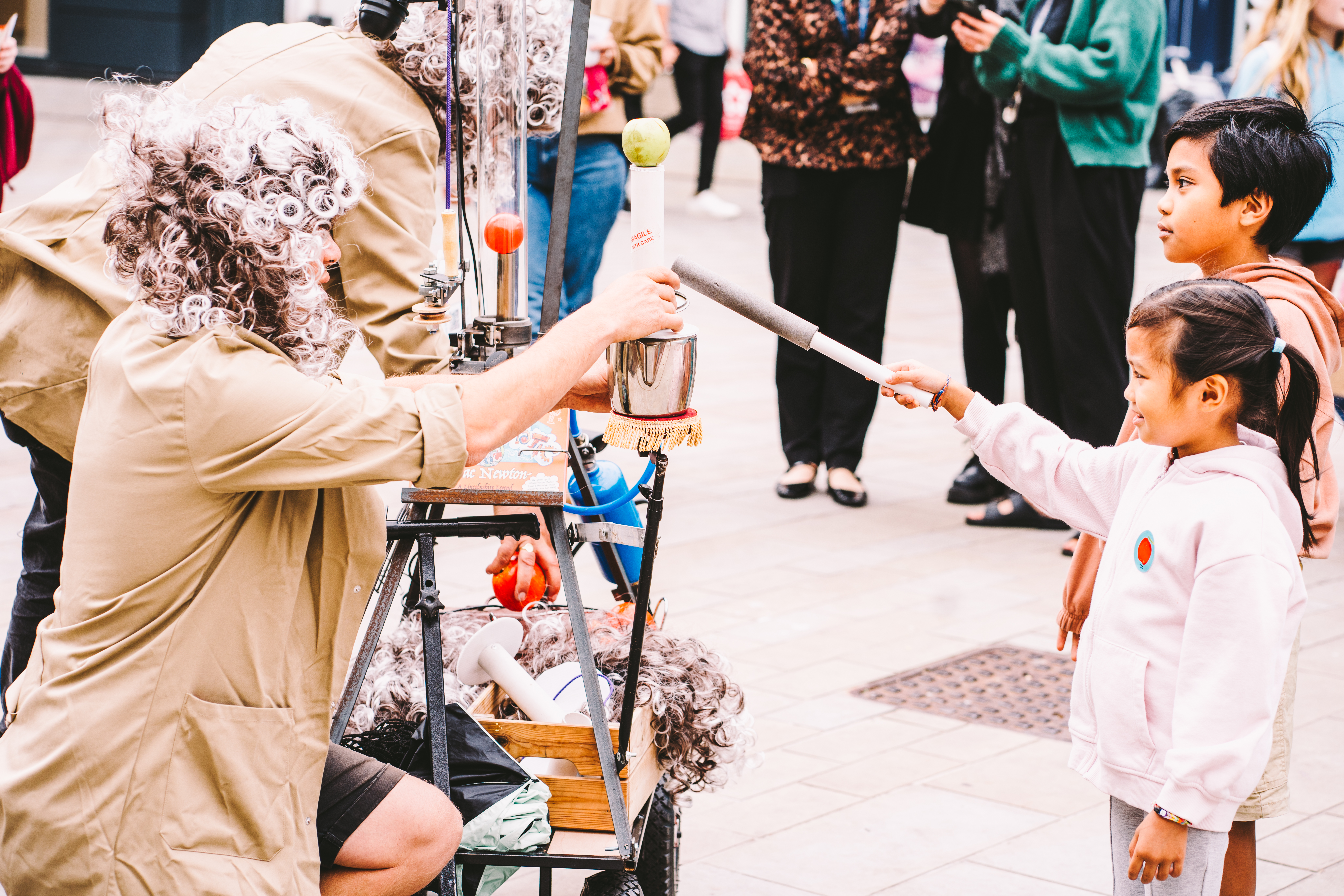 My role in this project was to design and make a contraption which will demonstrate some of Sir Isaac Newton’s theories which the public can engage with. I used my experience as both a performer and maker to design something which will interact and engage with the public out on the streets.
